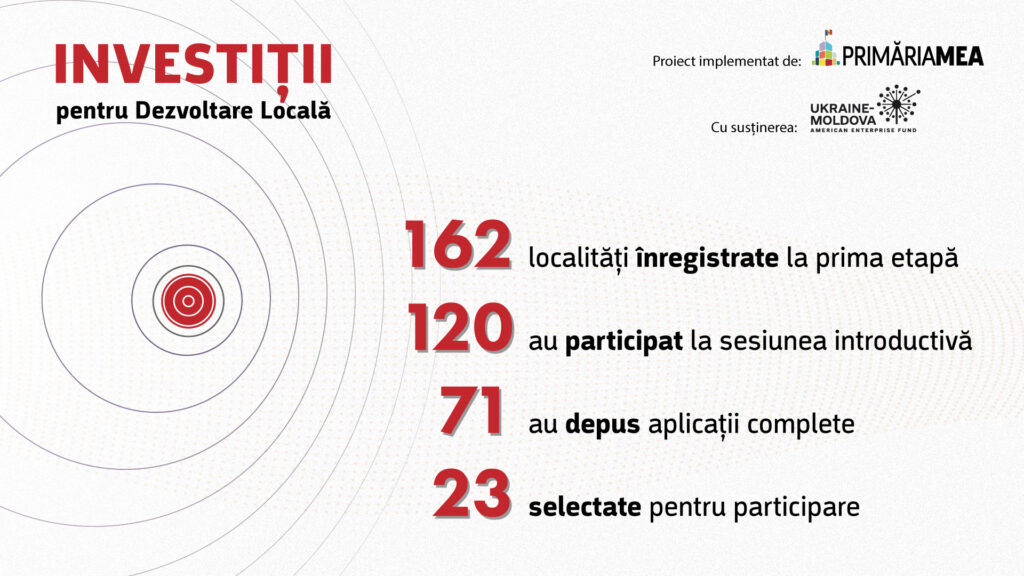 Programul este implementat de AO Primăria Mea cu suportul Ukraine-Moldova American Enterprise Fund și sprijină autoritățile locale în atragerea de investiții și promovarea dezvoltării economice sustenabile.